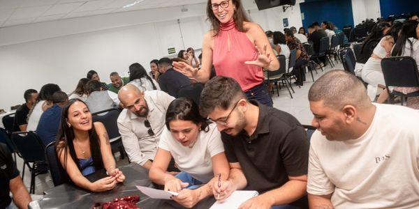 Dinâmicas de team building e trilhas de desenvolvimento promovem coesão e colaboração, com workshops sobre temas como delegação, feedback e gestão de tempo e prioridades. O objetivo é reduzir conflitos e elevar produtividade em equipes e áreas.